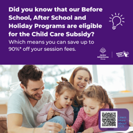 Did you know that our before school, after school and holiday programs are eligible for the Child Care Subsidy (CCS)?